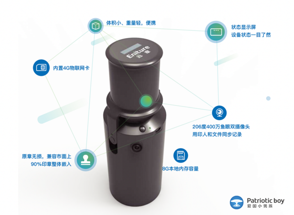 愛國小男孩智慧印章管理解決方案,在不破壞原有印章情況下,將企業實體印章嵌入智能云章設備中,采用云平臺、客戶端(手機App和Web)、智能終端三位融合的交互方式,通過鏡頭記錄每一次蓋章的過程:使用人、對象、時間、地點,通過4G物聯網將以上用章信息發送給管理者,隨時查看追溯,能解放印章管理者工作壓力,降低風險。