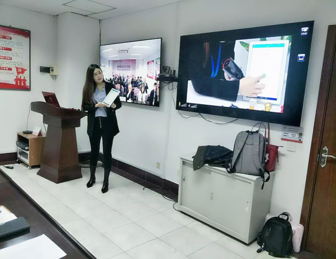 愛國小男孩科技銷售經理喬晶晶為天津聯通公司寶坻區總經理伊亞敏講解云章產品的使用