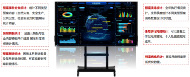 應(yīng)急指揮艙展示服務(wù)實(shí)現(xiàn)以預(yù)案結(jié)構(gòu)化數(shù)據(jù)為基礎(chǔ),通過豐富的圖表形式進(jìn)行數(shù)字化呈現(xiàn)預(yù)案系統(tǒng)預(yù)案演練、預(yù)案模板、預(yù)案編制等數(shù)據(jù),全面掌控全局應(yīng)急數(shù)據(jù)態(tài)勢。