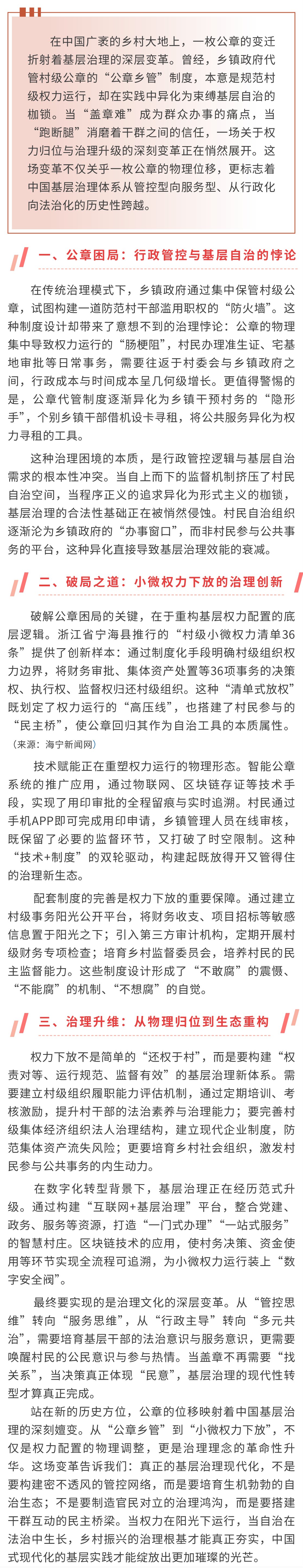 從“公章鄉管”到“小微權力下放”:基層治理現代化的破局之路